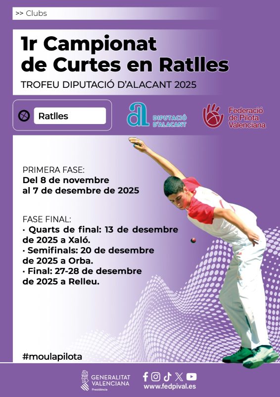 La nova competició en la modalitat de ratlles, anomenada I Campionat de Curtes en ratlles Trofeu Diputació d’Alacant 2025, comença aquest cap de setmana amb la disputa de la primera jornada de la fase regular que comptarà amb un total de 18 equips dividits en tres grups diferents.